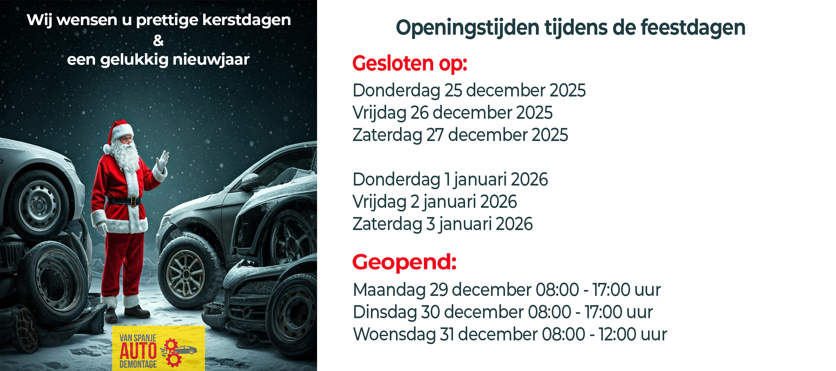 Autodemontage van Spanje B.V. streeft er naar op deze website altijd juiste en actuele informatie aan te bieden. Hoewel deze informatie met de grootst mogelijke zorgvuldigheid is samengesteld, staat Autodemontage van Spanje niet in voor de volledigheid, juistheid of actualiteit van de informatie. De juridische informatie op de website is van algemene aard en kan niet worden beschouwd als een vervanging van juridisch advies.